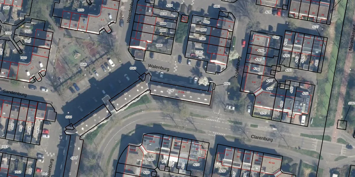 Het perceel waarop Walenburg 102 staat heeft een oppervlakte van 463 m². Dit is een groot perceel. De perceeloppervlakte wordt geregistreerd door het Kadaster. Gedetailleerde informatie over de maten van dit perceel kunt u vinden in het rapport Kadastrale kaart met maatvoering van Walenburg 102.
