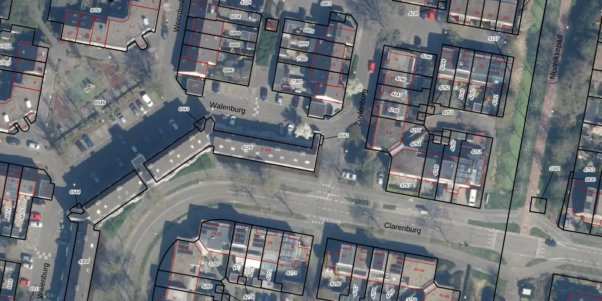 Het perceel waarop Walenburg 108 staat heeft een oppervlakte van 463 m². Dit is een groot perceel. De perceeloppervlakte wordt geregistreerd door het Kadaster. Gedetailleerde informatie over de maten van dit perceel kunt u vinden in het rapport Kadastrale kaart met maatvoering van Walenburg 108.