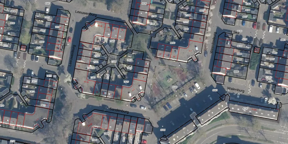 Gebruik de zoekbalk of klik op een perceel voor informatie over de adressen binnen dit perceel.