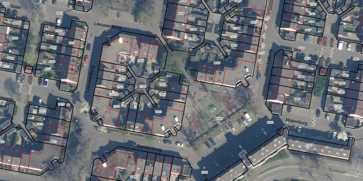 Gebruik de zoekbalk of klik op een perceel voor informatie over de adressen binnen dit perceel.
