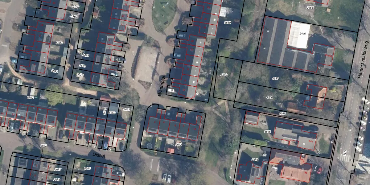 Het perceel waarop Wanmolen 12 staat heeft een oppervlakte van 1570 m². Dit is een zeer groot perceel. De perceeloppervlakte wordt geregistreerd door het Kadaster. Gedetailleerde informatie over de maten van dit perceel kunt u vinden in het rapport Kadastrale kaart met maatvoering van Wanmolen 12.