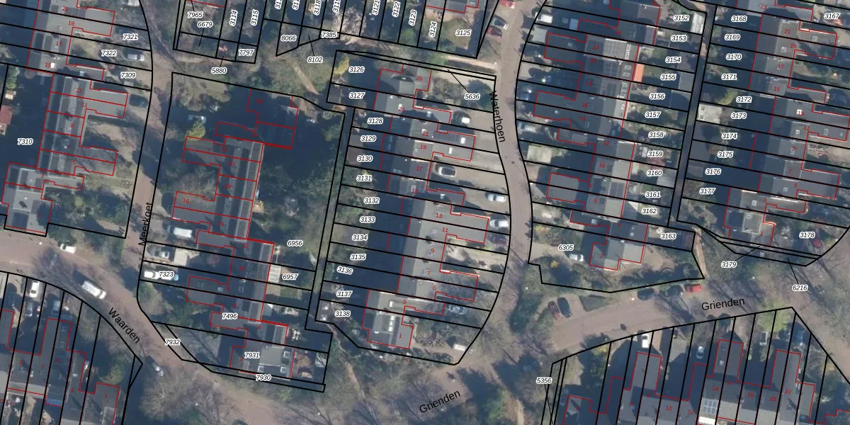 Gebruik de zoekbalk of klik op een perceel voor informatie over de adressen binnen dit perceel.