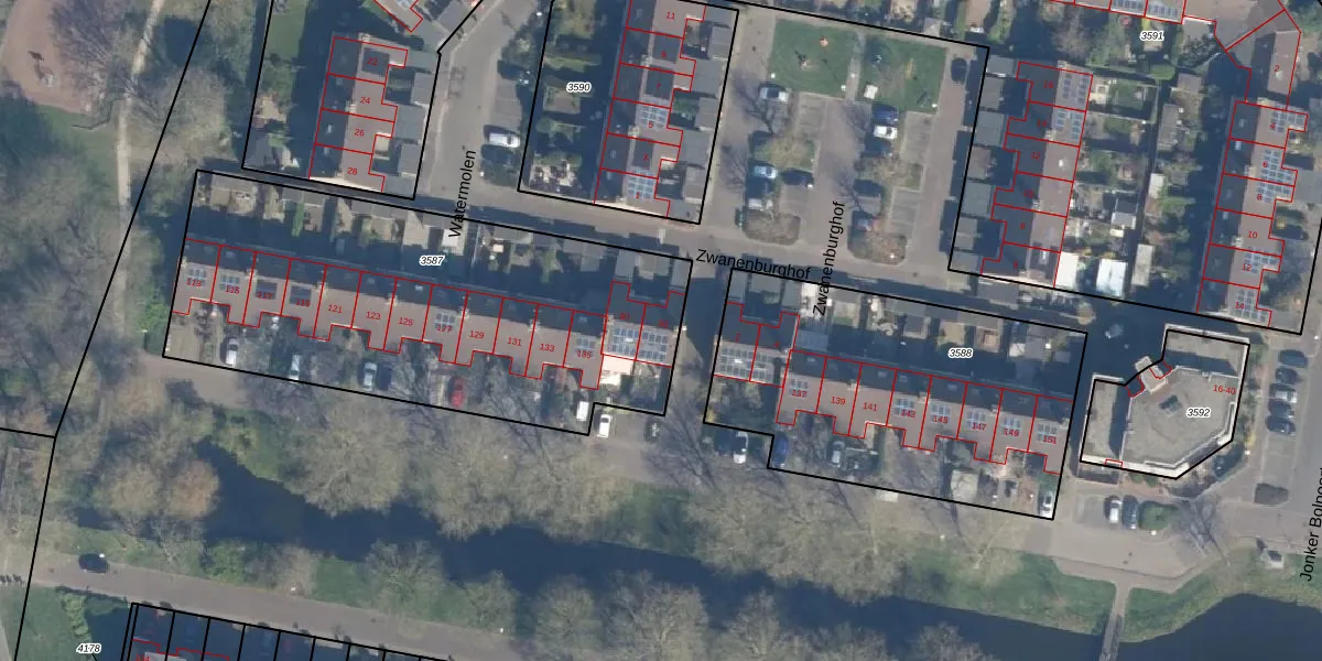 Het perceel waarop Watermolen 32 staat heeft een oppervlakte van 2140 m². Dit is een zeer groot perceel. De perceeloppervlakte wordt geregistreerd door het Kadaster. Gedetailleerde informatie over de maten van dit perceel kunt u vinden in het rapport Kadastrale kaart met maatvoering van Watermolen 32.