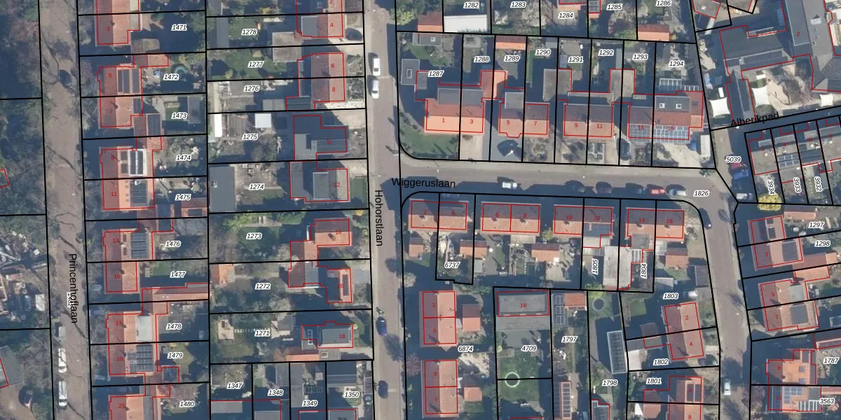 Het perceel waarop Wiggeruslaan 2 staat heeft een oppervlakte van 1630 m². Dit is een zeer groot perceel. De perceeloppervlakte wordt geregistreerd door het Kadaster. Gedetailleerde informatie over de maten van dit perceel kunt u vinden in het rapport Kadastrale kaart met maatvoering van Wiggeruslaan 2.