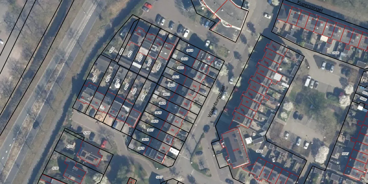 Gebruik de zoekbalk of klik op een perceel voor informatie over de adressen binnen dit perceel.