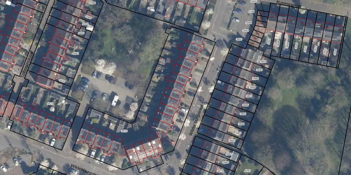 Wildenburgstraat 14 is gelegen op kadastraal perceel LDN02E3510. Deze kadastrale aanduiding is uniek en wordt gebruikt door het Kadaster om eigendomsrechten en andere zakelijke rechten vast te leggen. Het perceel maakt onderdeel uit van de kadastrale gemeente Leusden.