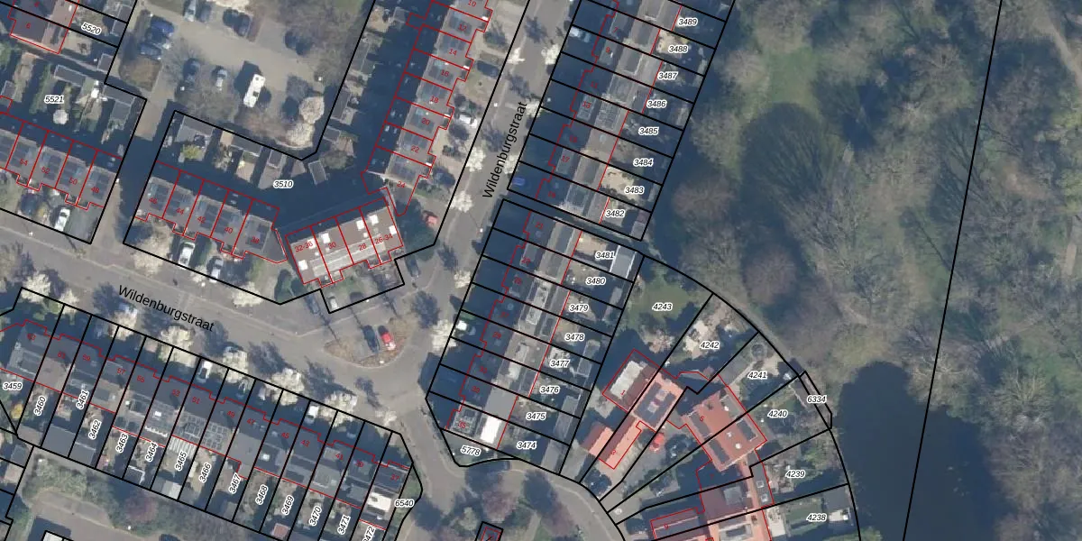 Gebruik de zoekbalk of klik op een perceel voor informatie over de adressen binnen dit perceel.