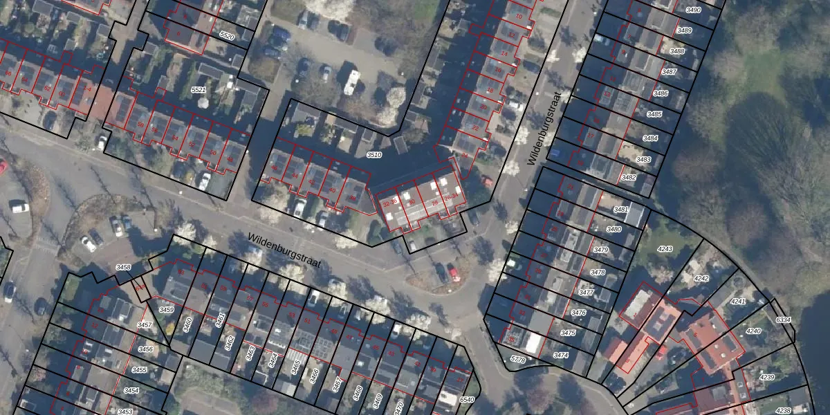 Wildenburgstraat 30 is gelegen op kadastraal perceel LDN02E3510. Deze kadastrale aanduiding is uniek en wordt gebruikt door het Kadaster om eigendomsrechten en andere zakelijke rechten vast te leggen. Het perceel maakt onderdeel uit van de kadastrale gemeente Leusden.