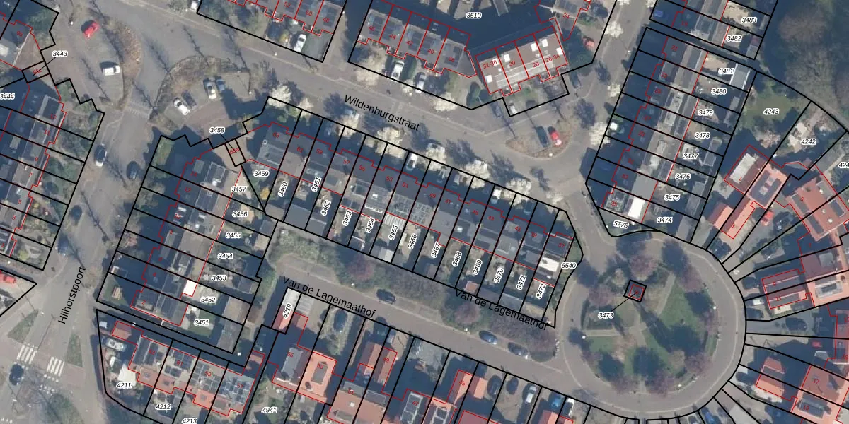 Gebruik de zoekbalk of klik op een perceel voor informatie over de adressen binnen dit perceel.