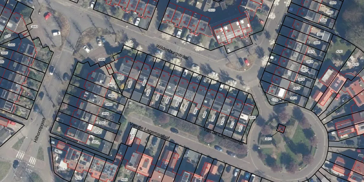 Gebruik de zoekbalk of klik op een perceel voor informatie over de adressen binnen dit perceel.