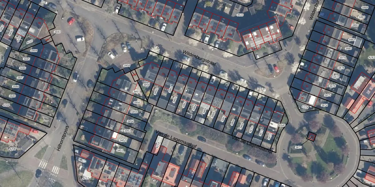 Gebruik de zoekbalk of klik op een perceel voor informatie over de adressen binnen dit perceel.