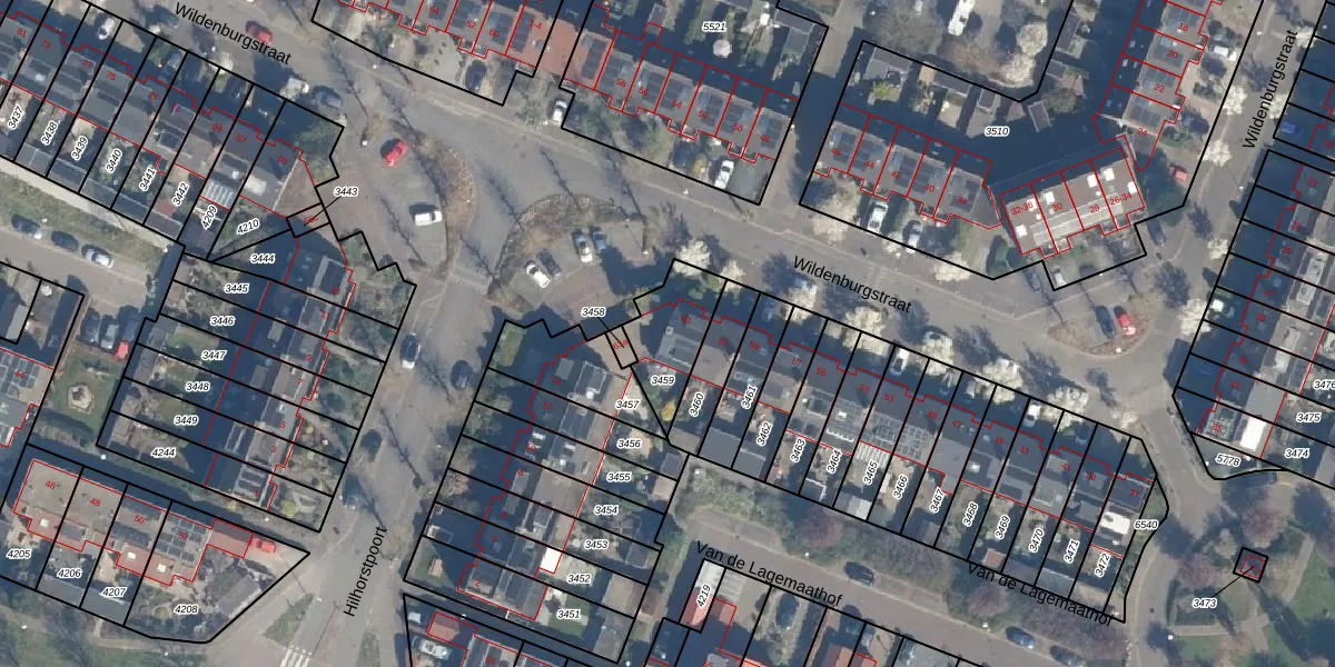 Wildenburgstraat 63 is gelegen op kadastraal perceel LDN02E3459. Deze kadastrale aanduiding is uniek en wordt gebruikt door het Kadaster om eigendomsrechten en andere zakelijke rechten vast te leggen. Het perceel maakt onderdeel uit van de kadastrale gemeente Leusden.