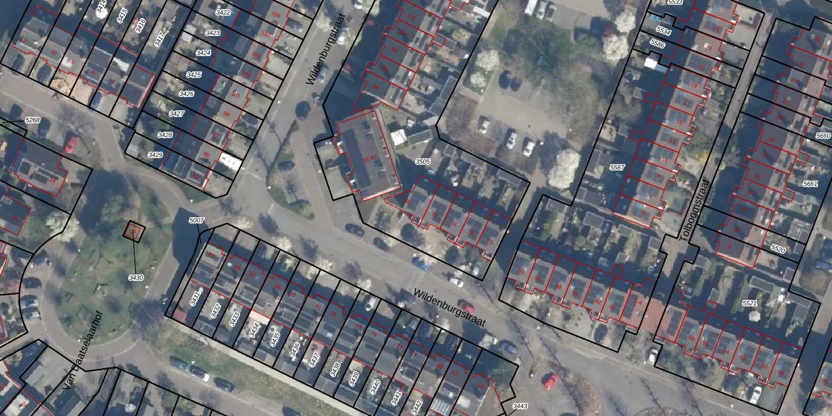 Het perceel waarop Wildenburgstraat 80 staat heeft een oppervlakte van 2580 m². Dit is een zeer groot perceel. De perceeloppervlakte wordt geregistreerd door het Kadaster. Gedetailleerde informatie over de maten van dit perceel kunt u vinden in het rapport Kadastrale kaart met maatvoering van Wildenburgstraat 80.