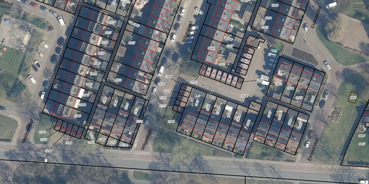 Gebruik de zoekbalk of klik op een perceel voor informatie over de adressen binnen dit perceel.