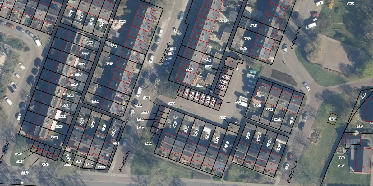 Gebruik de zoekbalk of klik op een perceel voor informatie over de adressen binnen dit perceel.