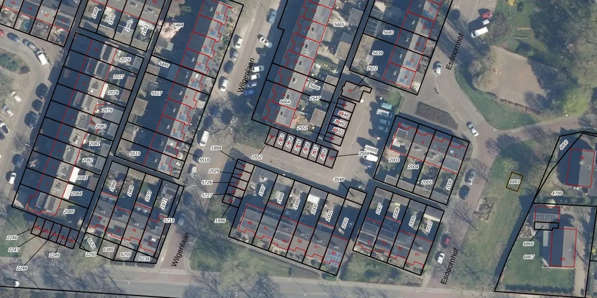 Het perceel waarop Wilgenlaan 4-d staat heeft een oppervlakte van 18 m². Dit is een klein perceel. De perceeloppervlakte wordt geregistreerd door het Kadaster. Gedetailleerde informatie over de maten van dit perceel kunt u vinden in het rapport Kadastrale kaart met maatvoering van Wilgenlaan 4-d.