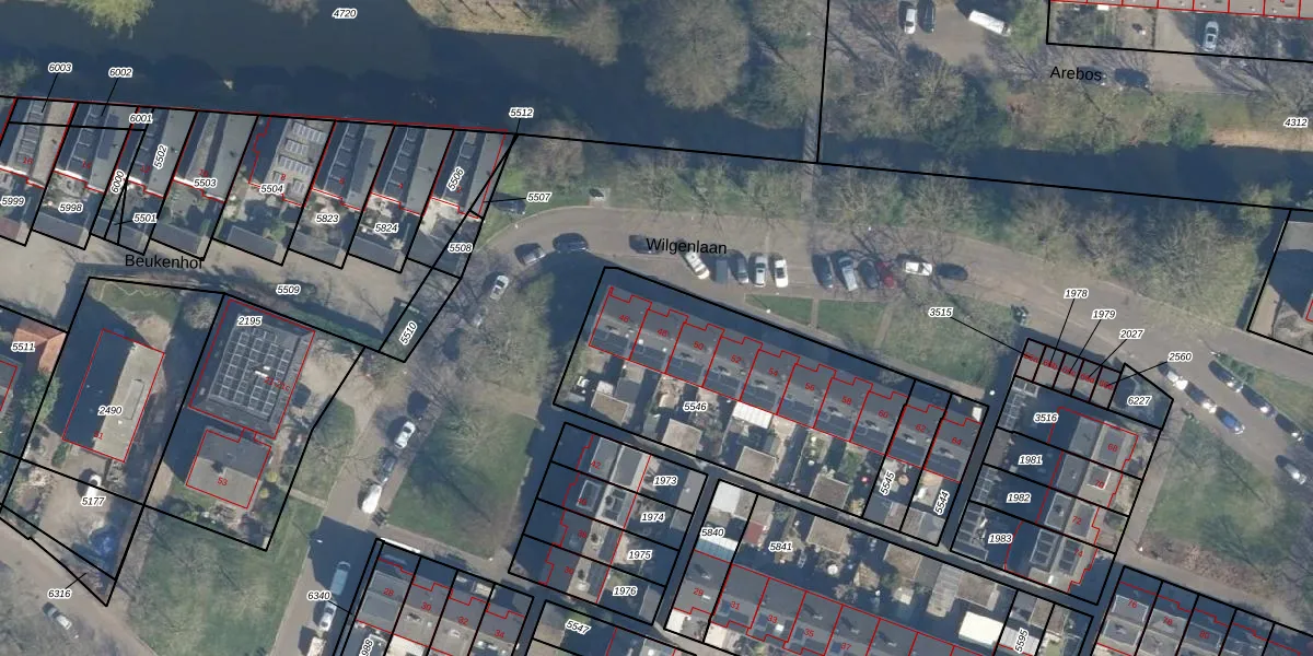 Het perceel waarop Wilgenlaan 48 staat heeft een oppervlakte van 1145 m². Dit is een zeer groot perceel. De perceeloppervlakte wordt geregistreerd door het Kadaster. Gedetailleerde informatie over de maten van dit perceel kunt u vinden in het rapport Kadastrale kaart met maatvoering van Wilgenlaan 48.