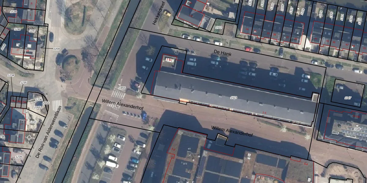 Willem Alexanderhof 1 is gelegen op kadastraal perceel LDN02I1523. Deze kadastrale aanduiding is uniek en wordt gebruikt door het Kadaster om eigendomsrechten en andere zakelijke rechten vast te leggen. Het perceel maakt onderdeel uit van de kadastrale gemeente Leusden.