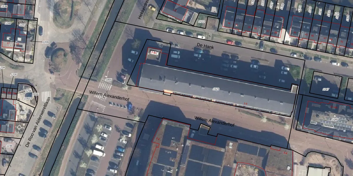 Het perceel waarop Willem Alexanderhof 3 staat heeft een oppervlakte van 1640 m². Dit is een zeer groot perceel. De perceeloppervlakte wordt geregistreerd door het Kadaster. Gedetailleerde informatie over de maten van dit perceel kunt u vinden in het rapport Kadastrale kaart met maatvoering van Willem Alexanderhof 3.