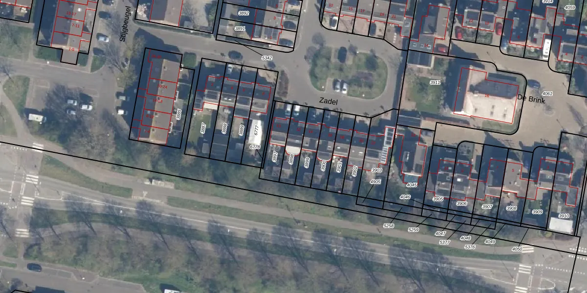 Gebruik de zoekbalk of klik op een perceel voor informatie over de adressen binnen dit perceel.