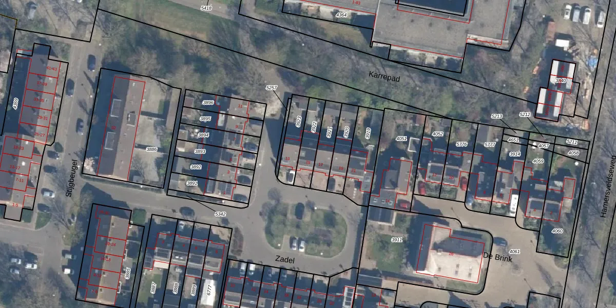 Het perceel waarop Zadel 15 staat heeft een oppervlakte van 158 m². Dit is een middelgroot perceel. De perceeloppervlakte wordt geregistreerd door het Kadaster. Gedetailleerde informatie over de maten van dit perceel kunt u vinden in het rapport Kadastrale kaart met maatvoering van Zadel 15.
