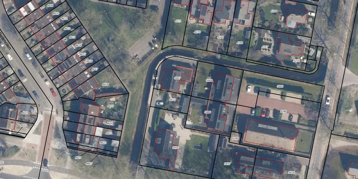 Gebruik de zoekbalk of klik op een perceel voor informatie over de adressen binnen dit perceel.