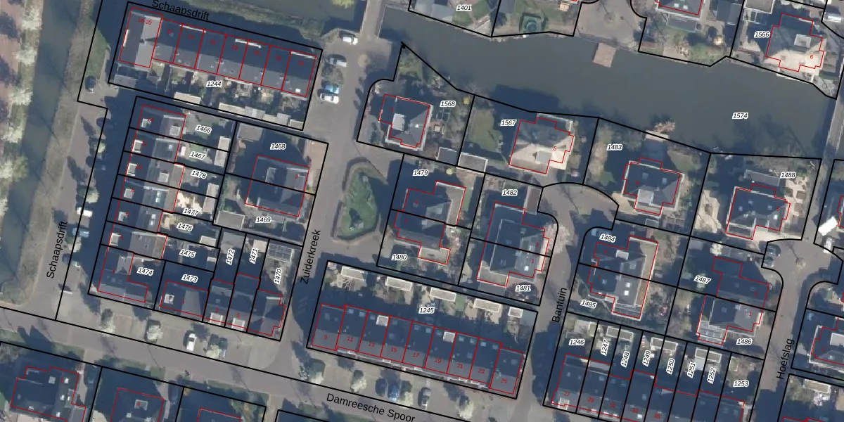 Gebruik de zoekbalk of klik op een perceel voor informatie over de adressen binnen dit perceel.