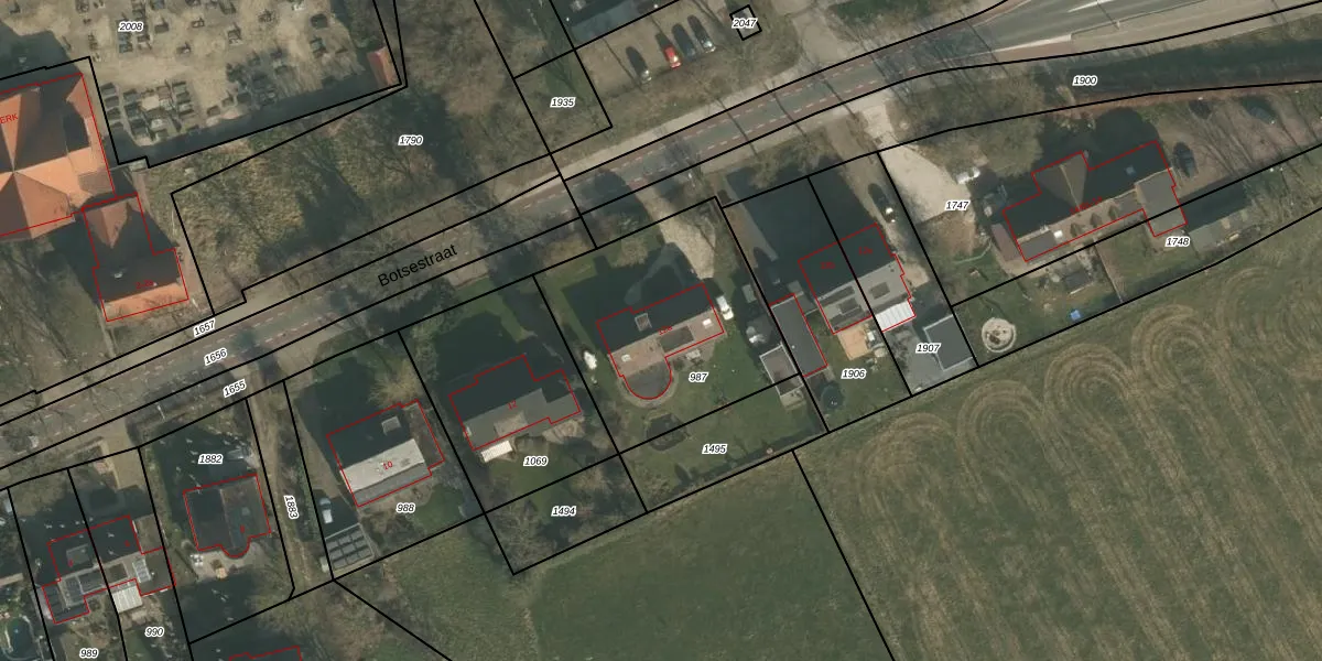 Het perceel waarop Botsestraat 12-a staat heeft een oppervlakte van 900 m². Dit is een groot perceel. De perceeloppervlakte wordt geregistreerd door het Kadaster. Gedetailleerde informatie over de maten van dit perceel kunt u vinden in het rapport Kadastrale kaart met maatvoering van Botsestraat 12-a.