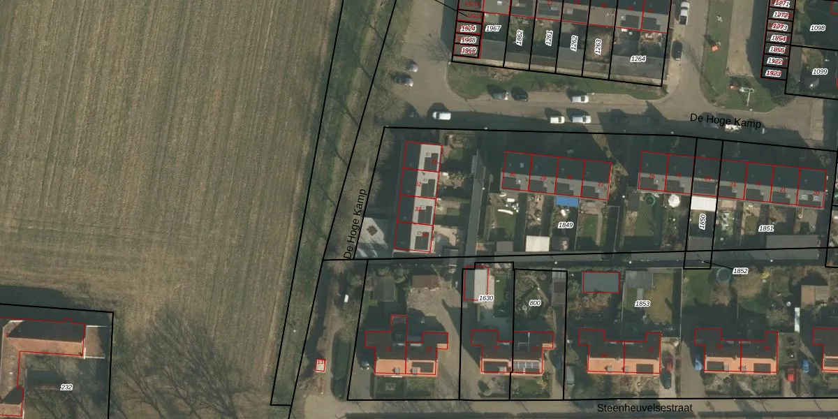 De Hoge Kamp 33 is gelegen op kadastraal perceel LEU00C1849. Deze kadastrale aanduiding is uniek en wordt gebruikt door het Kadaster om eigendomsrechten en andere zakelijke rechten vast te leggen. Het perceel maakt onderdeel uit van de kadastrale gemeente Leuth.