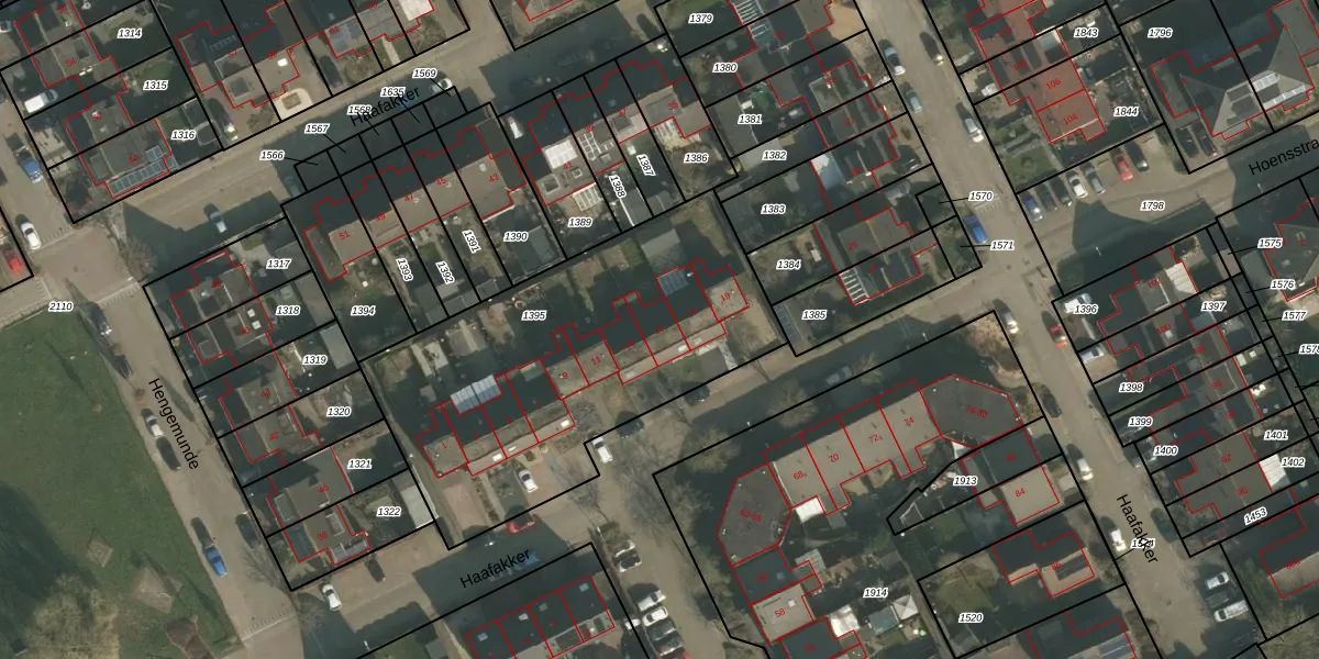 Het perceel waarop Haafakker 15 staat heeft een oppervlakte van 1715 m². Dit is een zeer groot perceel. De perceeloppervlakte wordt geregistreerd door het Kadaster. Gedetailleerde informatie over de maten van dit perceel kunt u vinden in het rapport Kadastrale kaart met maatvoering van Haafakker 15.