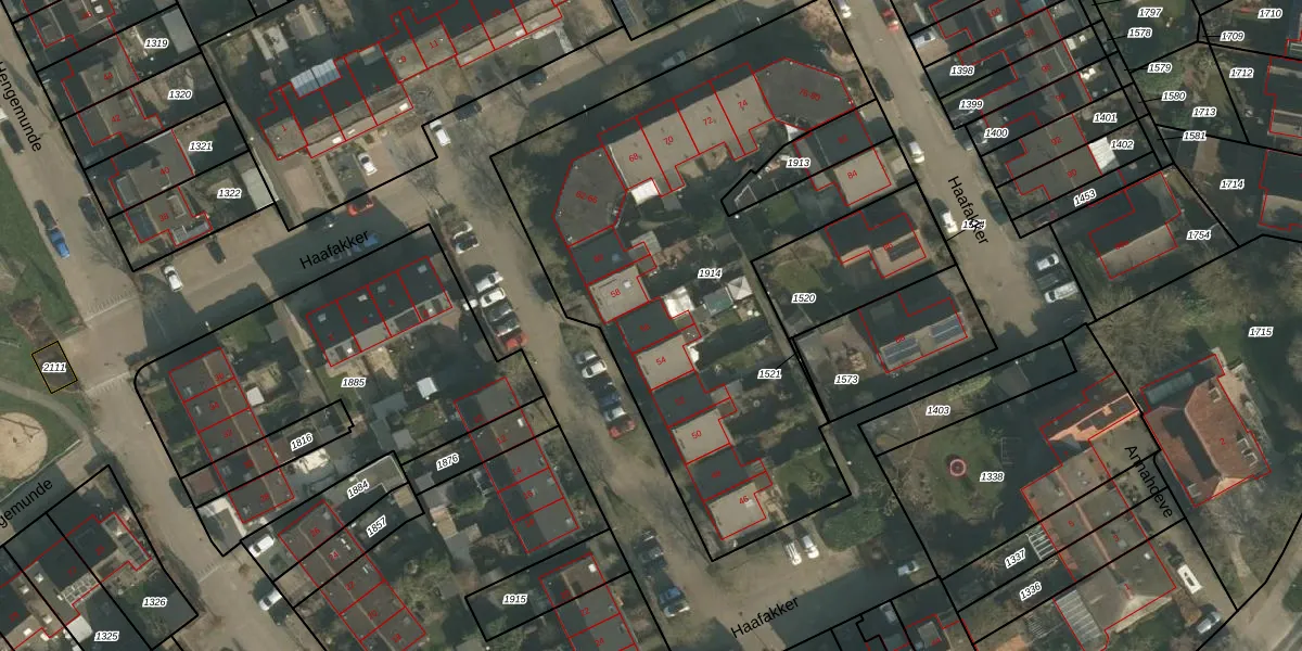 Het perceel waarop Haafakker 56 staat heeft een oppervlakte van 2645 m². Dit is een zeer groot perceel. De perceeloppervlakte wordt geregistreerd door het Kadaster. Gedetailleerde informatie over de maten van dit perceel kunt u vinden in het rapport Kadastrale kaart met maatvoering van Haafakker 56.