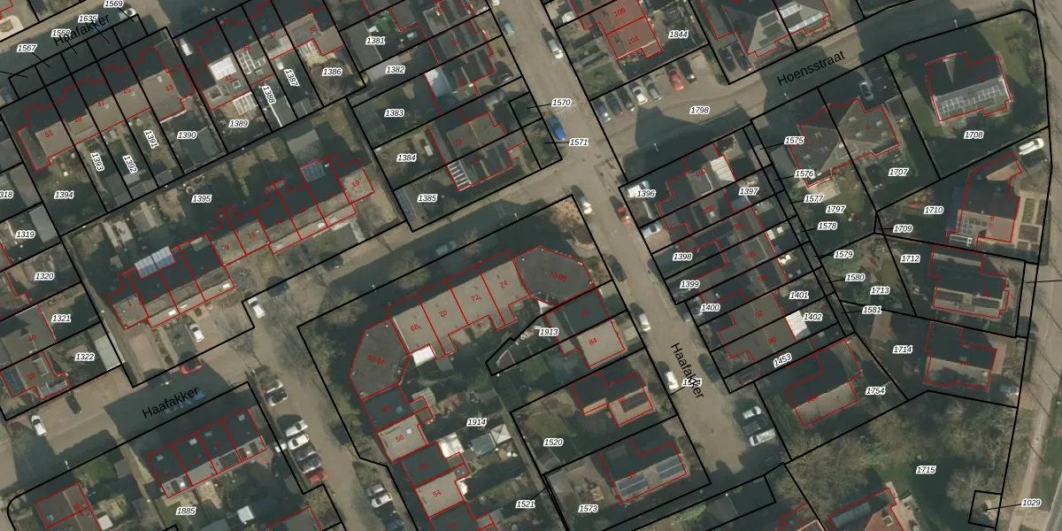 Het perceel waarop Haafakker 76 staat heeft een oppervlakte van 2645 m². Dit is een zeer groot perceel. De perceeloppervlakte wordt geregistreerd door het Kadaster. Gedetailleerde informatie over de maten van dit perceel kunt u vinden in het rapport Kadastrale kaart met maatvoering van Haafakker 76.