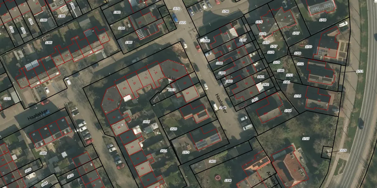 Het perceel waarop Haafakker 84 staat heeft een oppervlakte van 2645 m². Dit is een zeer groot perceel. De perceeloppervlakte wordt geregistreerd door het Kadaster. Gedetailleerde informatie over de maten van dit perceel kunt u vinden in het rapport Kadastrale kaart met maatvoering van Haafakker 84.