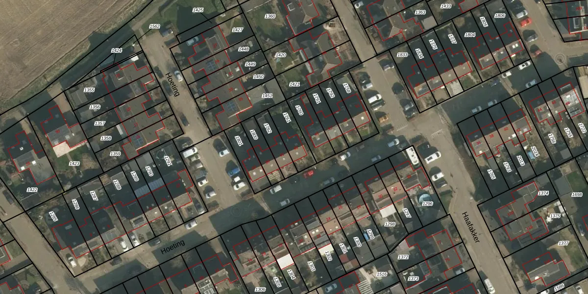 Het perceel waarop Hoeting 43 staat heeft een oppervlakte van 170 m². Dit is een middelgroot perceel. De perceeloppervlakte wordt geregistreerd door het Kadaster. Gedetailleerde informatie over de maten van dit perceel kunt u vinden in het rapport Kadastrale kaart met maatvoering van Hoeting 43.