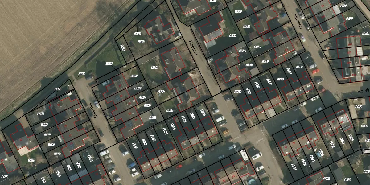 Het perceel waarop Hoeting 55 staat heeft een oppervlakte van 250 m². Dit is een middelgroot perceel. De perceeloppervlakte wordt geregistreerd door het Kadaster. Gedetailleerde informatie over de maten van dit perceel kunt u vinden in het rapport Kadastrale kaart met maatvoering van Hoeting 55.