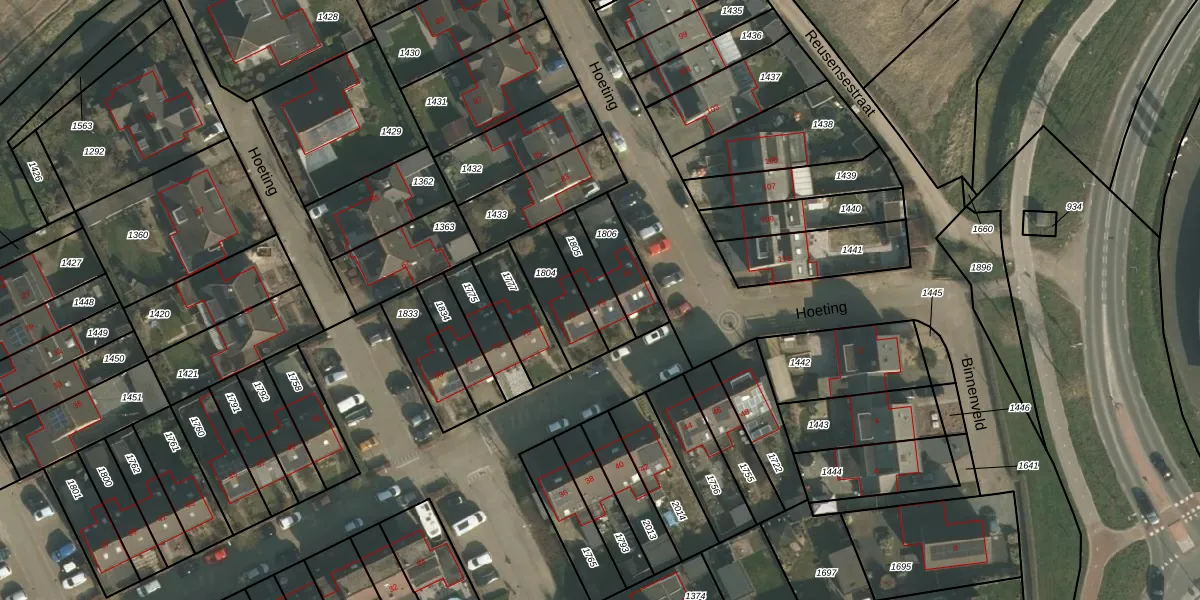 Hoeting 79 is gelegen op kadastraal perceel LEU00C1805. Deze kadastrale aanduiding is uniek en wordt gebruikt door het Kadaster om eigendomsrechten en andere zakelijke rechten vast te leggen. Het perceel maakt onderdeel uit van de kadastrale gemeente Leuth.