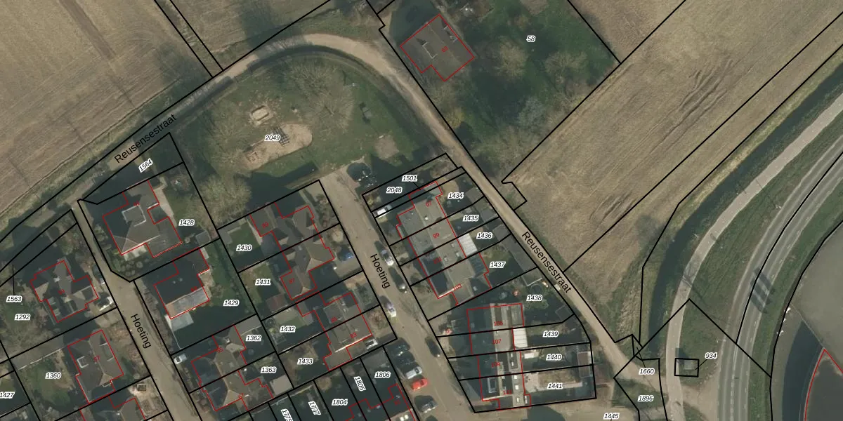 Hoeting 97 is gelegen op kadastraal perceel LEU00C1434. Deze kadastrale aanduiding is uniek en wordt gebruikt door het Kadaster om eigendomsrechten en andere zakelijke rechten vast te leggen. Het perceel maakt onderdeel uit van de kadastrale gemeente Leuth.