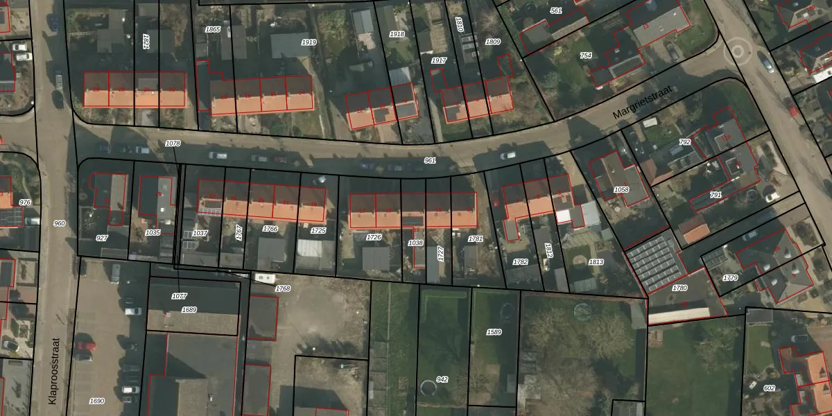 Gebruik de zoekbalk of klik op een perceel voor informatie over de adressen binnen dit perceel.