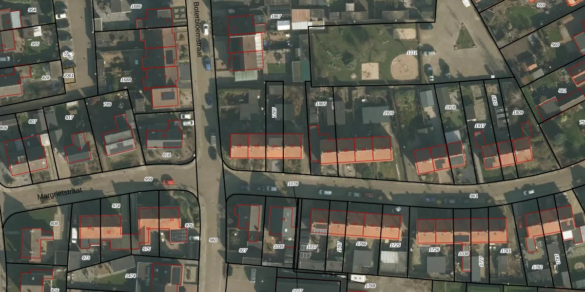 Het perceel waarop Margrietstraat 22 staat heeft een oppervlakte van 3827 m². Dit is een zeer groot perceel. De perceeloppervlakte wordt geregistreerd door het Kadaster. Gedetailleerde informatie over de maten van dit perceel kunt u vinden in het rapport Kadastrale kaart met maatvoering van Margrietstraat 22.