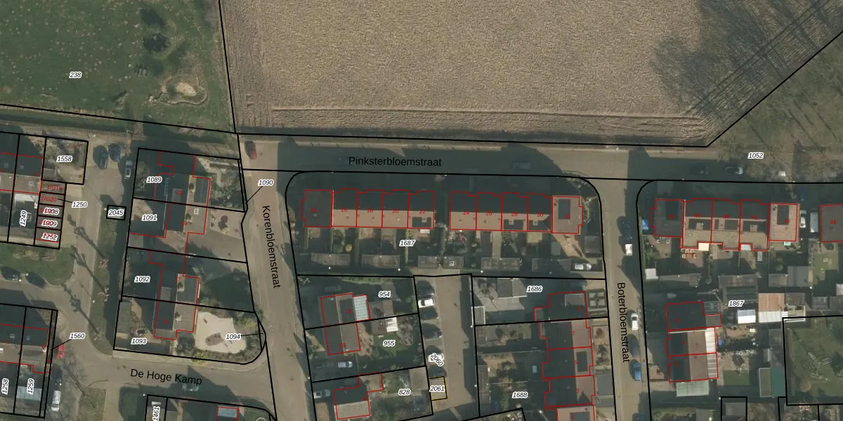 Het perceel waarop Pinksterbloemstraat 22 staat heeft een oppervlakte van 1785 m². Dit is een zeer groot perceel. De perceeloppervlakte wordt geregistreerd door het Kadaster. Gedetailleerde informatie over de maten van dit perceel kunt u vinden in het rapport Kadastrale kaart met maatvoering van Pinksterbloemstraat 22.