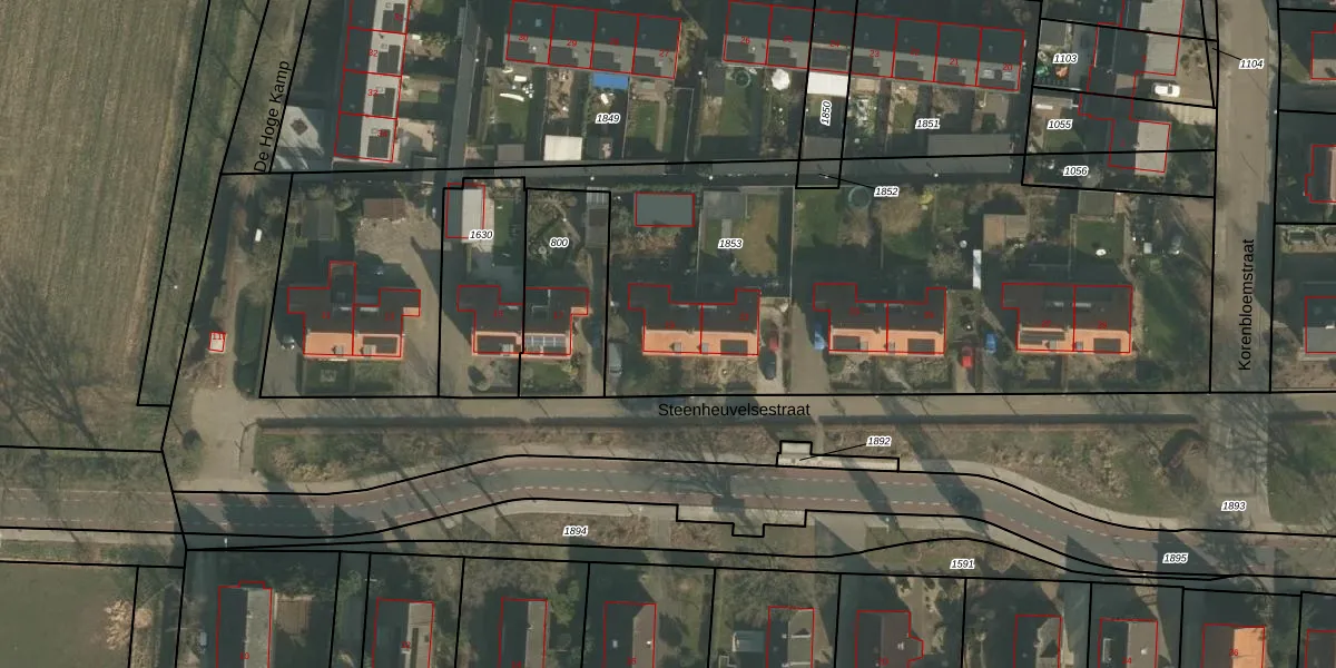 Het perceel waarop Steenheuvelsestraat 19 staat heeft een oppervlakte van 3898 m². Dit is een zeer groot perceel. De perceeloppervlakte wordt geregistreerd door het Kadaster. Gedetailleerde informatie over de maten van dit perceel kunt u vinden in het rapport Kadastrale kaart met maatvoering van Steenheuvelsestraat 19.