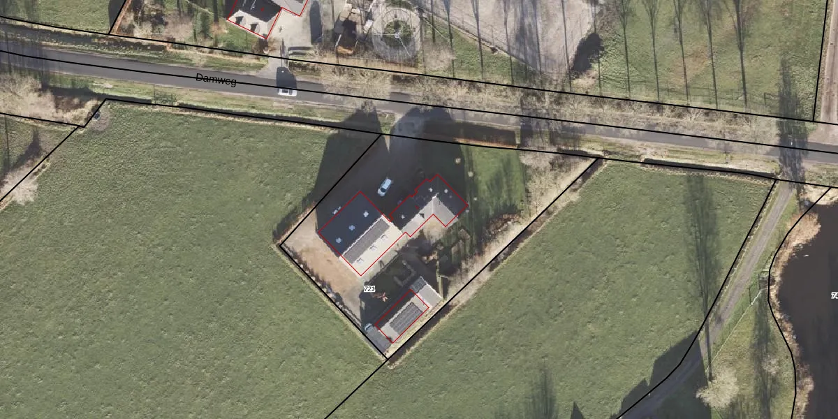 Damweg 1 is gelegen op kadastraal perceel RDN01Q721. Deze kadastrale aanduiding is uniek en wordt gebruikt door het Kadaster om eigendomsrechten en andere zakelijke rechten vast te leggen. Het perceel maakt onderdeel uit van de kadastrale gemeente Roden.