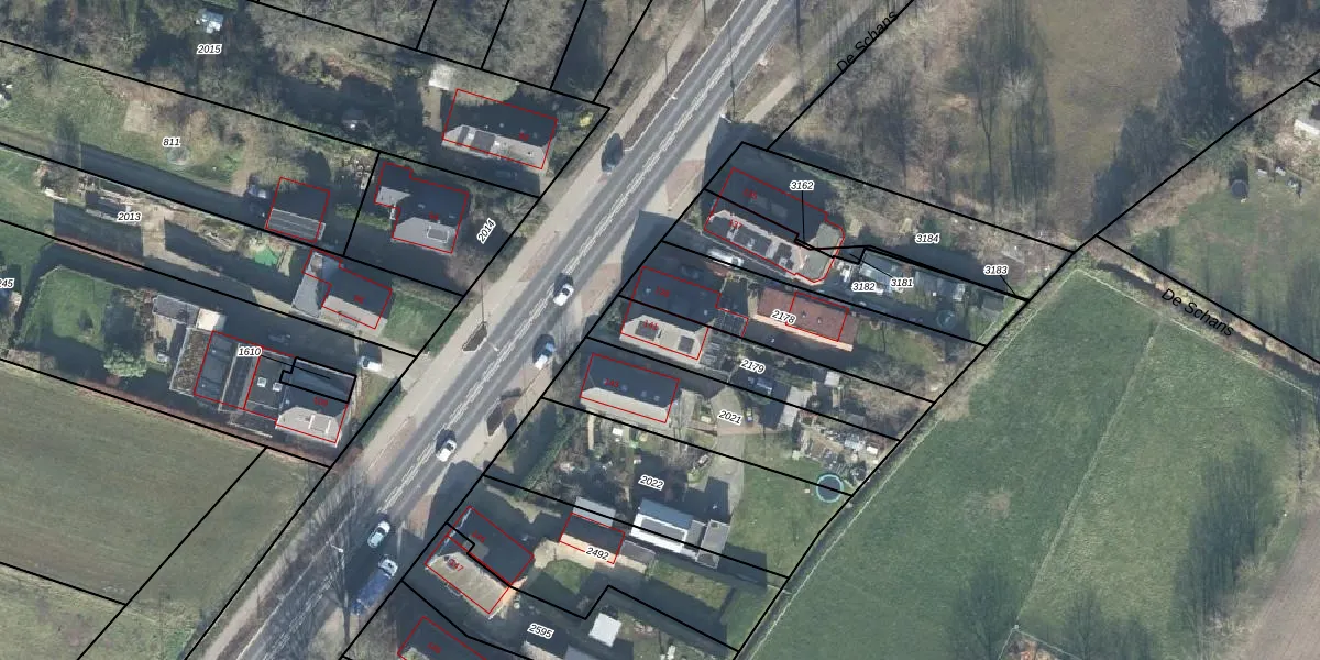 Gebruik de zoekbalk of klik op een perceel voor informatie over de adressen binnen dit perceel.