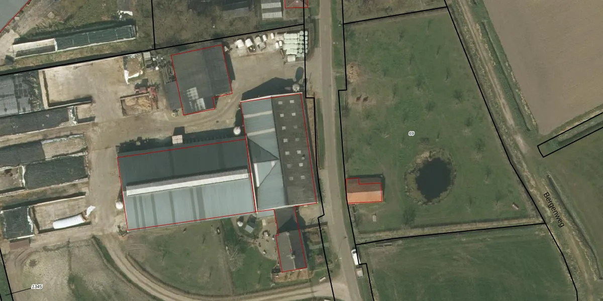 Het perceel waarop Bergenweg 1 staat heeft een oppervlakte van 7,4 ha. Dit is een zeer groot perceel. De perceeloppervlakte wordt geregistreerd door het Kadaster. Gedetailleerde informatie over de maten van dit perceel kunt u vinden in het rapport Kadastrale kaart met maatvoering van Bergenweg 1.