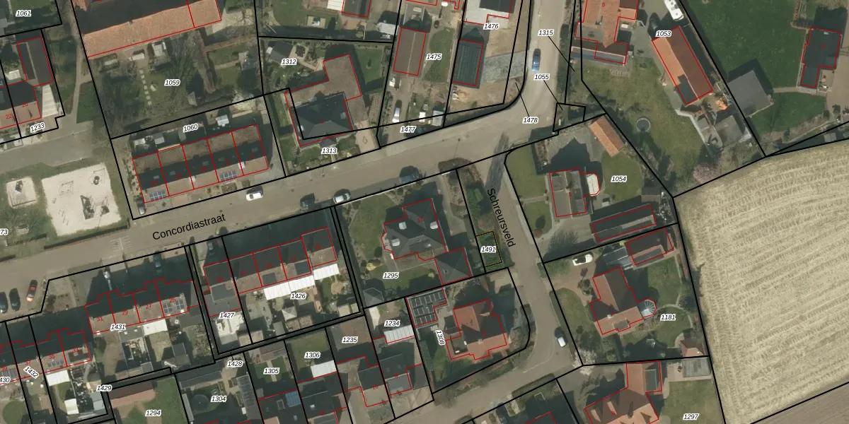 Concordiastraat 13 is gelegen op kadastraal perceel NDW00AB1295. Deze kadastrale aanduiding is uniek en wordt gebruikt door het Kadaster om eigendomsrechten en andere zakelijke rechten vast te leggen. Het perceel maakt onderdeel uit van de kadastrale gemeente Nederweert.