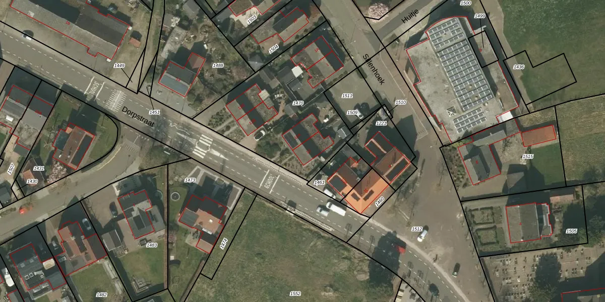 Het perceel waarop Dorpstraat 12 staat heeft een oppervlakte van 1455 m². Dit is een zeer groot perceel. De perceeloppervlakte wordt geregistreerd door het Kadaster. Gedetailleerde informatie over de maten van dit perceel kunt u vinden in het rapport Kadastrale kaart met maatvoering van Dorpstraat 12.