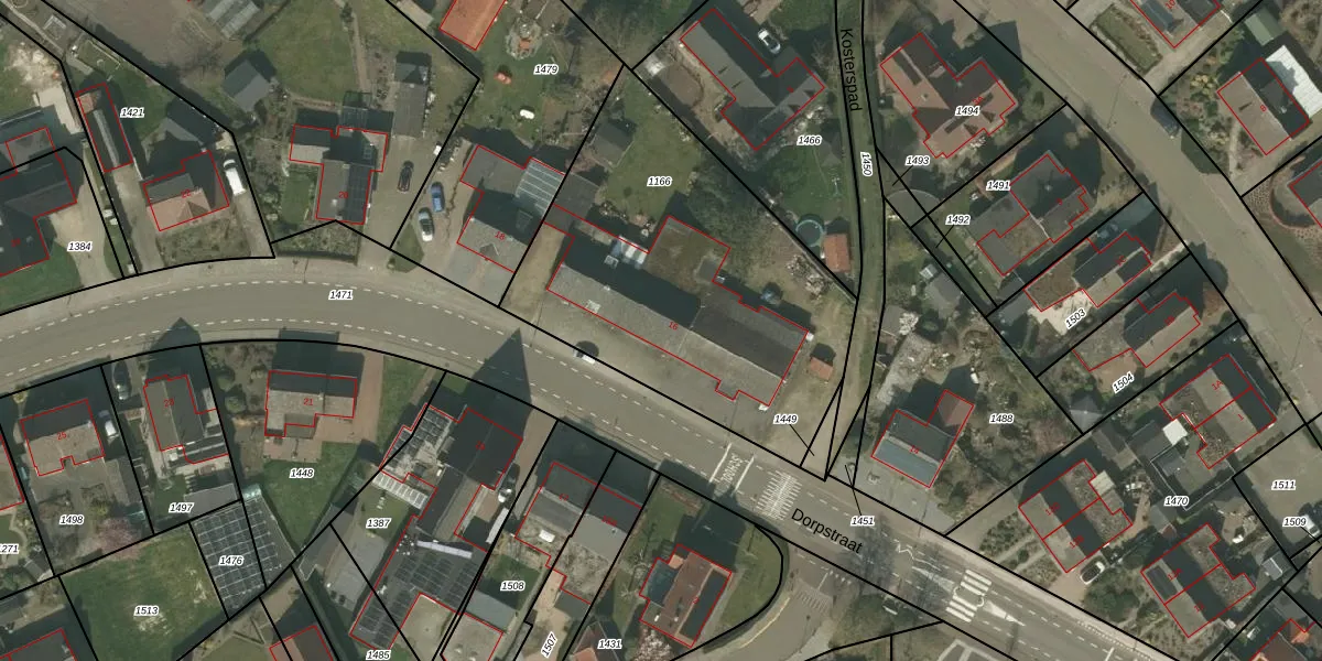 Dorpstraat 16 is gelegen op kadastraal perceel NDW00G1166. Deze kadastrale aanduiding is uniek en wordt gebruikt door het Kadaster om eigendomsrechten en andere zakelijke rechten vast te leggen. Het perceel maakt onderdeel uit van de kadastrale gemeente Nederweert.
