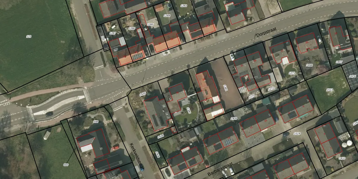Het perceel waarop Dorpstraat 35 staat heeft een oppervlakte van 550 m². Dit is een groot perceel. De perceeloppervlakte wordt geregistreerd door het Kadaster. Gedetailleerde informatie over de maten van dit perceel kunt u vinden in het rapport Kadastrale kaart met maatvoering van Dorpstraat 35.