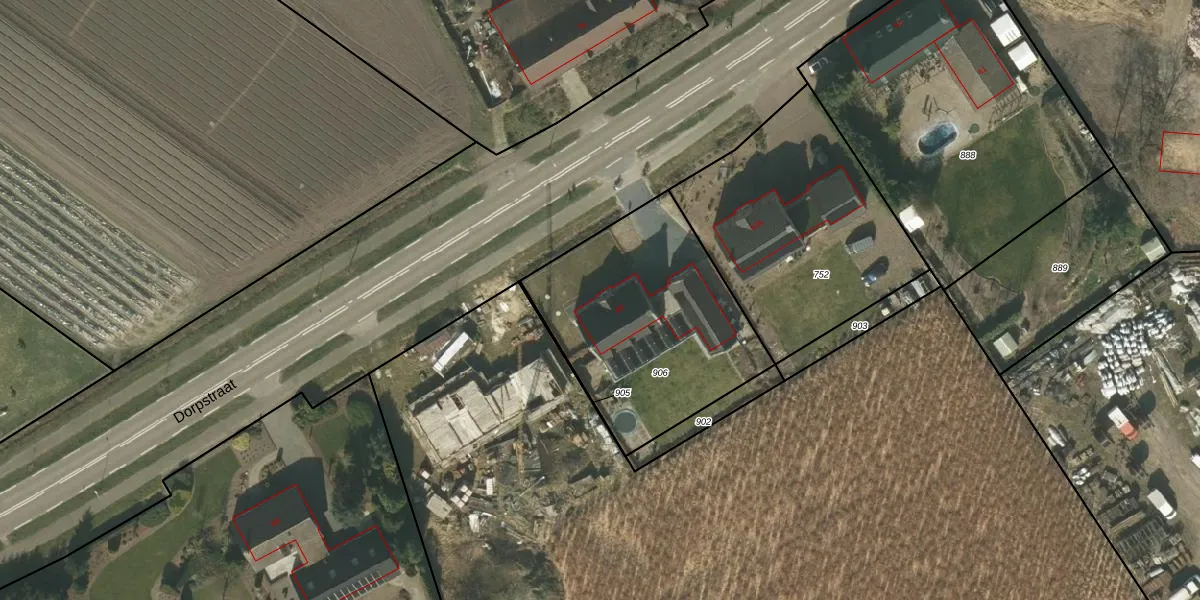 Het perceel waarop Dorpstraat 65 staat heeft een oppervlakte van 995 m². Dit is een groot perceel. De perceeloppervlakte wordt geregistreerd door het Kadaster. Gedetailleerde informatie over de maten van dit perceel kunt u vinden in het rapport Kadastrale kaart met maatvoering van Dorpstraat 65.