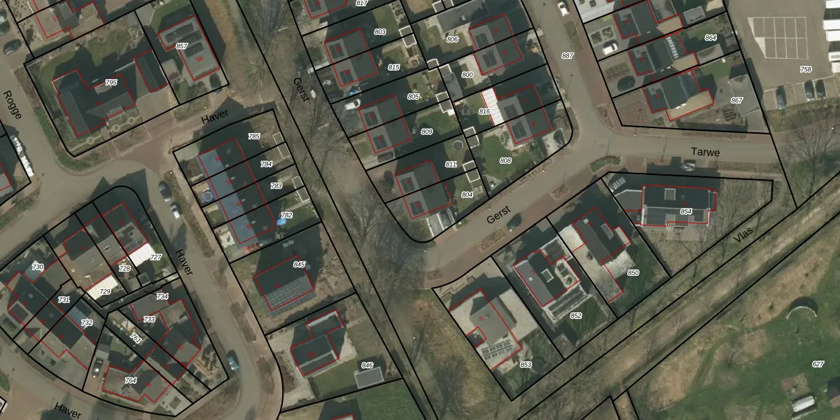 Het perceel waarop Gerst 2 staat heeft een oppervlakte van 232 m². Dit is een middelgroot perceel. De perceeloppervlakte wordt geregistreerd door het Kadaster. Gedetailleerde informatie over de maten van dit perceel kunt u vinden in het rapport Kadastrale kaart met maatvoering van Gerst 2.